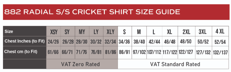 882-01-Y Youth Radial S/S Cricket Shirt 882-01-Y